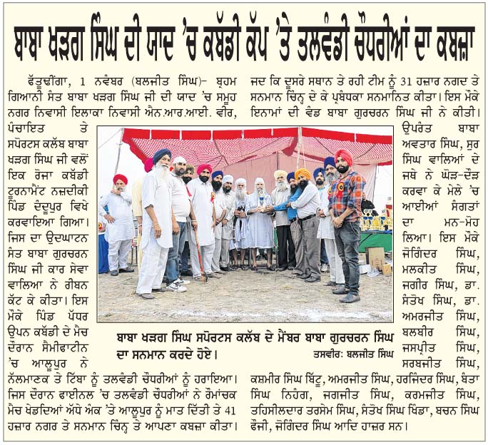 ਪਿੰਡ ਦੰਦੂਪੁਰ ਵਿਖੇ ਬਾਬਾ ਖੜਗ ਸਿੰਘ ਜੀ ਦੀ ਯਾਦ ‘ਚ ਕਬੱਡੀ ਕੱਪ’ਤੇ ਤਲਵੰਡੀ ਚੌਧਰੀਆਂ ਦਾ ਕਬਜ਼ਾ।