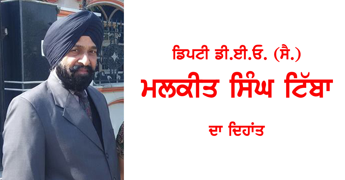 ਉਪ ਜ਼ਿਲ੍ਹਾ ਸਿੱਖਿਆ ਅਫ਼ਸਰ ਸੈਕੰਡਰੀ ਕਪੂਰਥਲਾ ਸ: ਮਲਕੀਤ ਸਿੰਘ ਟਿੱਬਾ (55) ਦਾ ਅੱਜ ਜਲੰਧਰ ਦੇ ਇਕ ਨਿੱਜੀ ਹਸਪਤਾਲ ਵਿਚ ਦਿਹਾਂਤ ਹੋ ਗਿਆ | ਉਹ ਪਿਛਲੇ ਕੁੱਝ ਸਮੇਂ ਤੋਂ ਕੈਂਸਰ ਦੀ ਬਿਮਾਰੀ ਨਾਲ ਪੀੜਤ ਚੱਲੇ ਆ ਰਹੇ ਸਨ | ਇੱਥੇ ਵਰਨਣਯੋਗ ਹੈ ਕਿ ਸ: ਮਲਕੀਤ ਸਿੰਘ ਟਿੱਬਾ ਨੇ ਸਰਕਾਰੀ ਸੀਨੀਅਰ ਸੈਕੰਡਰੀ ਸਕੂਲ ਟਿੱਬਾ ਤੇ ਸਰਕਾਰੀ ਸੀਨੀਅਰ ਸੈਕੰਡਰੀ ਸਕੂਲ ਢਪਈ ਵਿਚ ਪਿ੍ੰਸੀਪਲ ਤੇ ਉਪ ਜ਼ਿਲ੍ਹਾ ਸਿੱਖਿਆ ਅਫ਼ਸਰ ਕਪੂਰਥਲਾ ਵਜੋਂ ਆਪਣੀਆਂ ਸੇਵਾਵਾਂ ਬਾਖੂਬੀ ਨਾਲ ਨਿਭਾਈਆਂ | ਉਹ ਆਪਣੇ ਪਿੱਛੇ ਵਿਧਵਾ ਪਤਨੀ ਤੇ ਦੋ ਲੜਕੇ ਛੱਡ ਗਏ | ਇਸੇ ਦੌਰਾਨ ਹੀ ਲੈਕਚਰਾਰ ਯੂਨੀਅਨ ਦੇ ਜ਼ਿਲ੍ਹਾ ਪ੍ਰਧਾਨ ਅਮਰੀਕ ਸਿੰਘ ਨੰਢਾ, ਜਨਰਲ ਸਕੱਤਰ ਗੁਰਚਰਨ ਸਿੰਘ ਚਾਹਲ, ਅਧਿਆਪਕ ਦਲ ਦੇ ਜ਼ਿਲ੍ਹਾ ਪ੍ਰਧਾਨ ਸੁਖਦਿਆਲ ਸਿੰਘ ਝੰਡ, ਡੈਮੋਕਰੈਟਿਕ ਟੀਚਰ ਫ਼ਰੰਟ ਜ਼ਿਲ੍ਹਾ ਕਪੂਰਥਲਾ ਦੇ ਪ੍ਰਧਾਨ ਸੁੱਚਾ ਸਿੰਘ, ਜਨਰਲ ਸਕੱਤਰ ਸੁਖਵਿੰਦਰ ਸਿੰਘ ਚੀਮਾ, ਨੈਸ਼ਨਲ ਐਵਾਰਡੀ ਸਰਵਣ ਸਿੰਘ ਔਜਲਾ ਤੇ ਹੋਰ ਅਧਿਆਪਕ ਜਥੇਬੰਦੀਆਂ ਨੇ ਸ: ਮਲਕੀਤ ਸਿੰਘ ਟਿੱਬਾ ਦੀ ਬੇਵਕਤੀ ਮੌਤ ‘ਤੇ ਡੂੰਘੇ ਦੁੱਖ ਦਾ ਇਜ਼ਹਾਰ ਕੀਤਾ ਤੇ ਦੁਖੀ ਪਰਿਵਾਰ ਨਾਲ ਹਮਦਰਦੀ ਪ੍ਰਗਟ ਕੀਤੀ |
